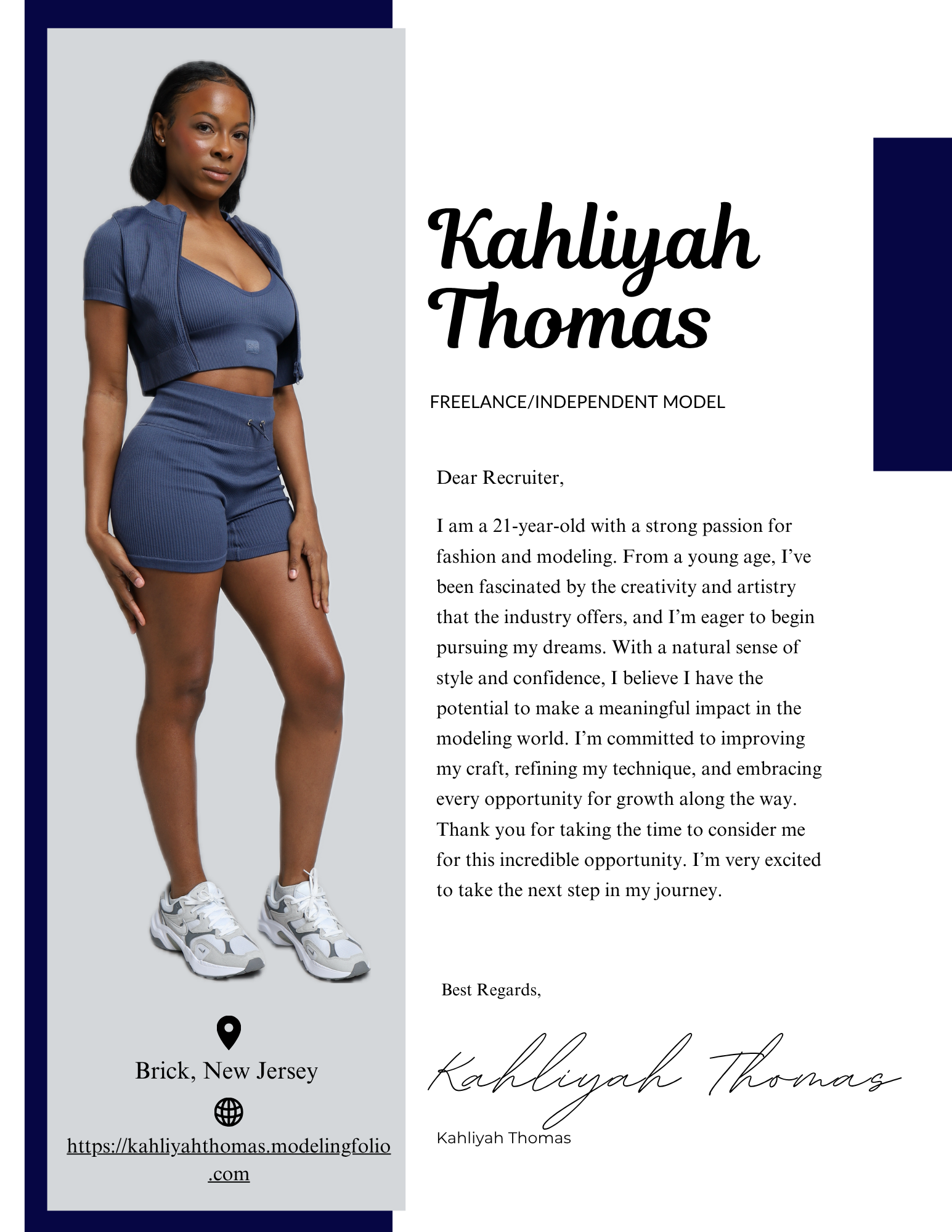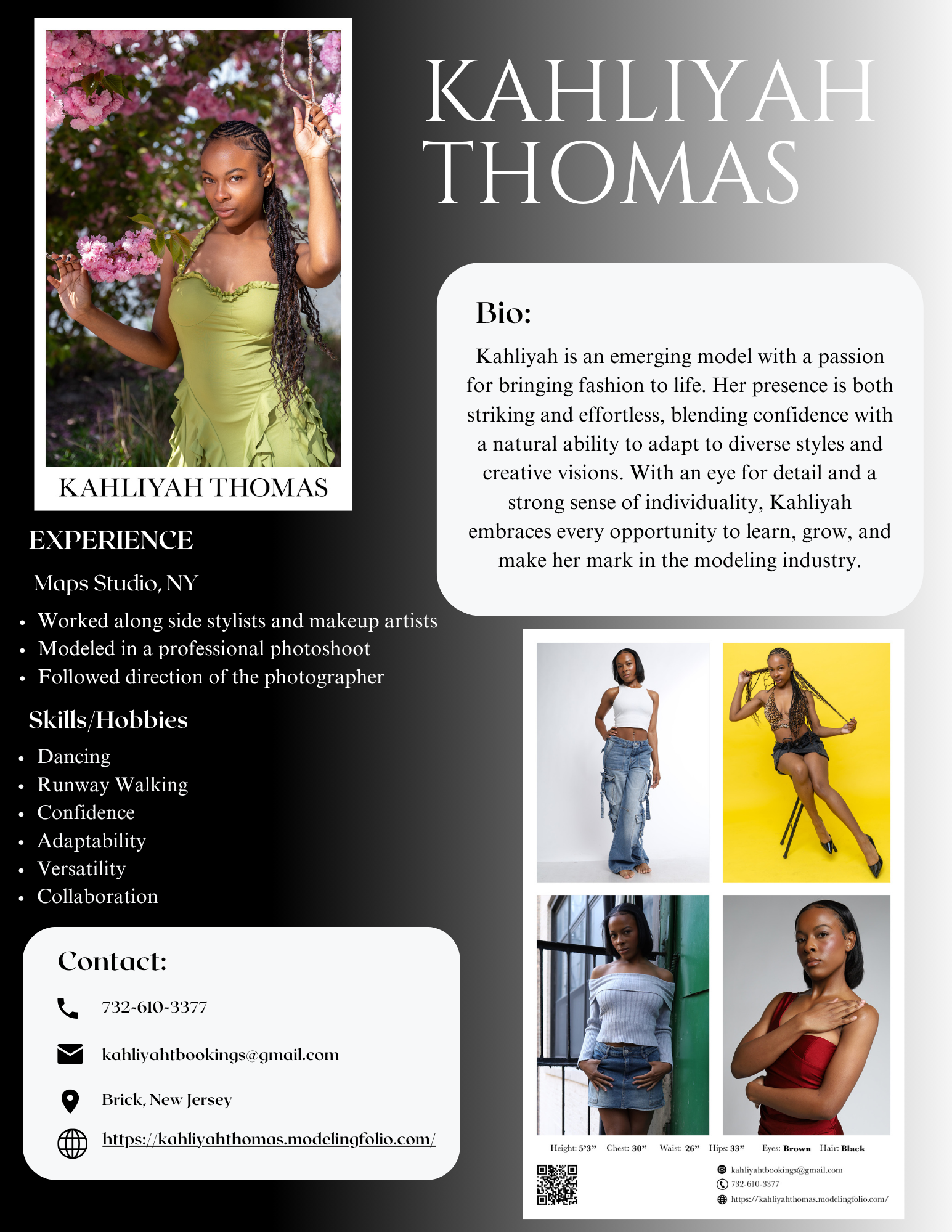 My name is Kahliyah, and I am a 21-year-old aspiring model with a strong passion for the fashion industry. I have always been captivated by the power of visual storytelling and how fashion can express creativity, confidence, and individuality. With a natural flair for style and an eye for detail, I am driven to explore the diverse opportunities that modeling offers.